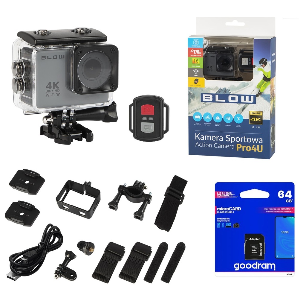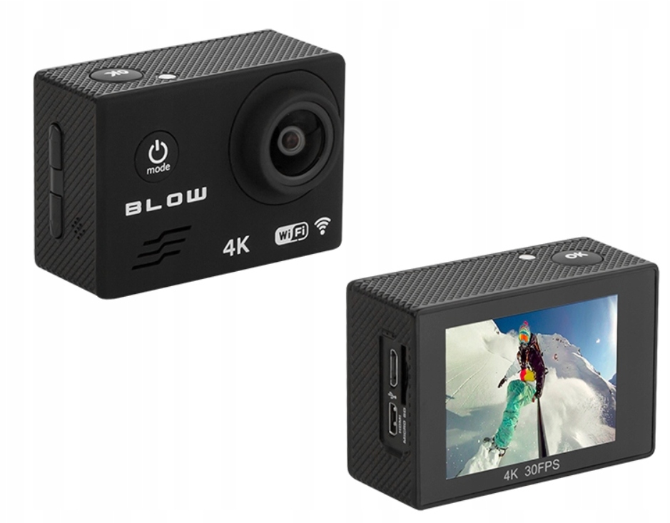Rejestrator Blow Action Camera Go Pro4U 4K WiFi SPORTOWA WIFI ACTION. Tela de alta definição a capacidade de reproduzir o vídeo gravado Bateria. Wideorejestrator BLOW BLACKBOX DVR F600 43 FullHD 11900 zł.