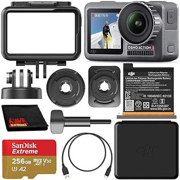 Amazon Com Dji Osmo Action 4k Camera With 256gb Basic Accessory Bundle Includes Sandisk Extreme 256gb Microsdxc Memory Card Uhs I V30 A2 U3 Class 10 Microfiber Cleaning Cloth Electronics
